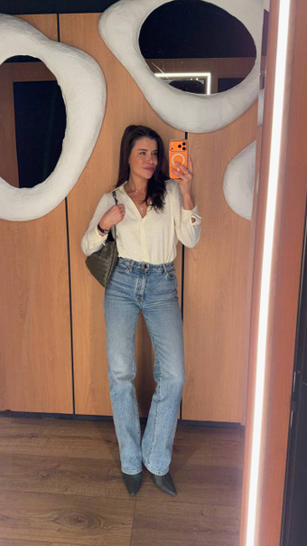Очень понравилась идея: вроде рубашка, но из трикотажной ткани. Чуть сбивает градус серьезности, но по-прежнему выглядит элегантно. Красивый глубокий вырез, но нет проблем подобрать к нему белье. Ткань мягкая, плотная, не прозрачная. Качество исполнения на высоте. Спасибо бренду за такую вещь!